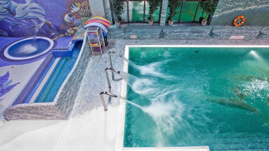 - Aquapark attractions: recreational swimming pool with cascades and hydro massage, air geyser, water slide, paddling pools, Jacuzzi, water jets, Finnish sauna, steam sauna.